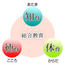 知育(あたま)・徳育[情](こころ)・体育(からだ)の三位一体の総合教育を掲げ、バランスある成長が出来るよう人生の根っこの育成につとめます。