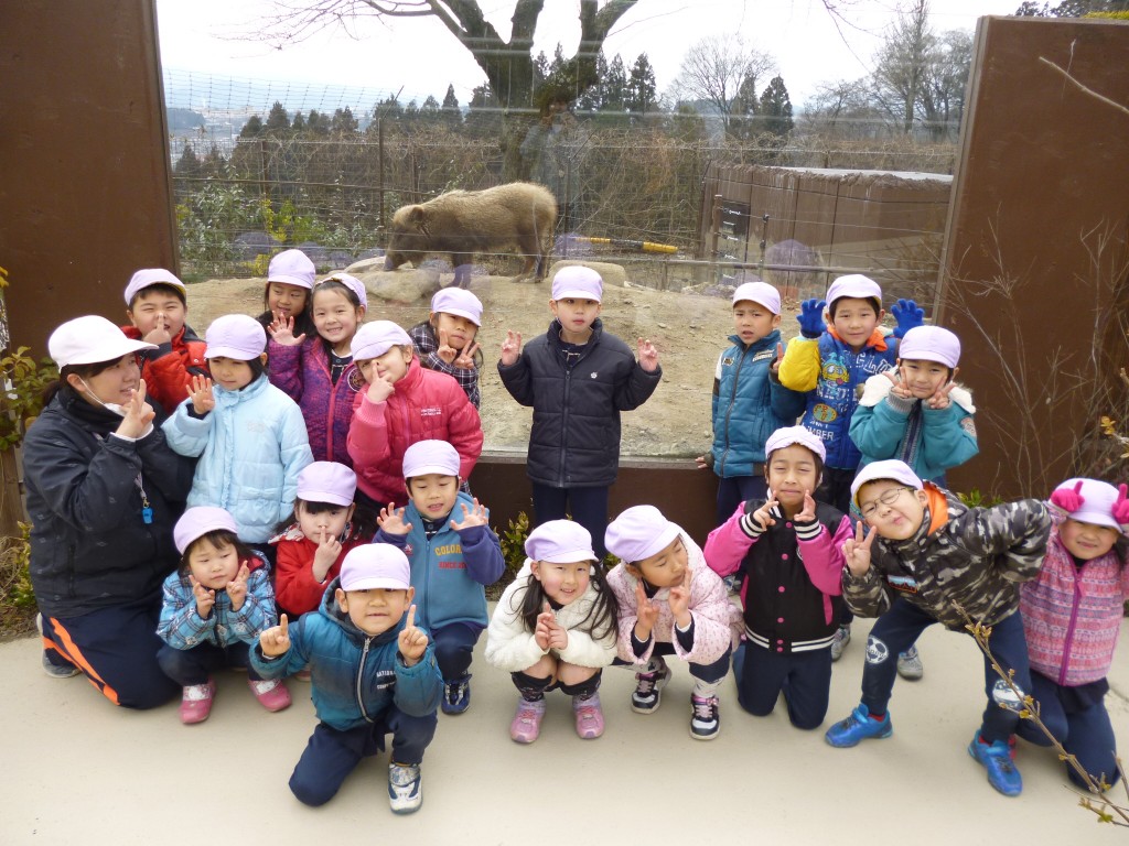 年長さん最後の行事「お別れ遠足」に風越・羽場保育園の年長さんが行ってきました。行き先は、いいだ動物園!!子どもたちは、かわいい動物たちに大興奮!!ペンギンやミーアキャットのえさやりを見学したり、園内にある汽車に乗ったりととても楽しい時間を過ごすことができました。お待ちかねのお弁当は少し歩いて移動し、羽場公民館でいただきました。おいしいお弁当は、どの子もペロリと食べてしまいました!!年長さんにとってとっても楽しい一日となり、楽しい思い出となりました。