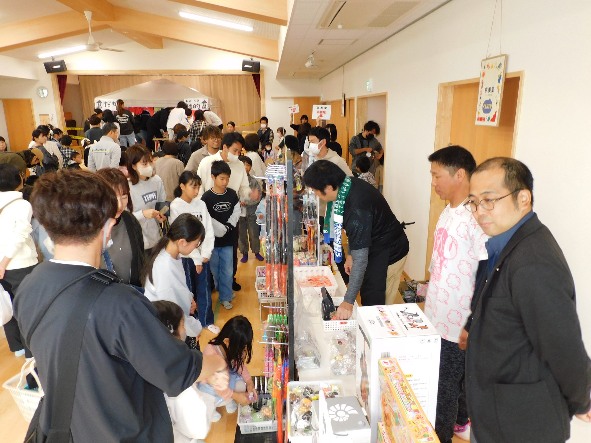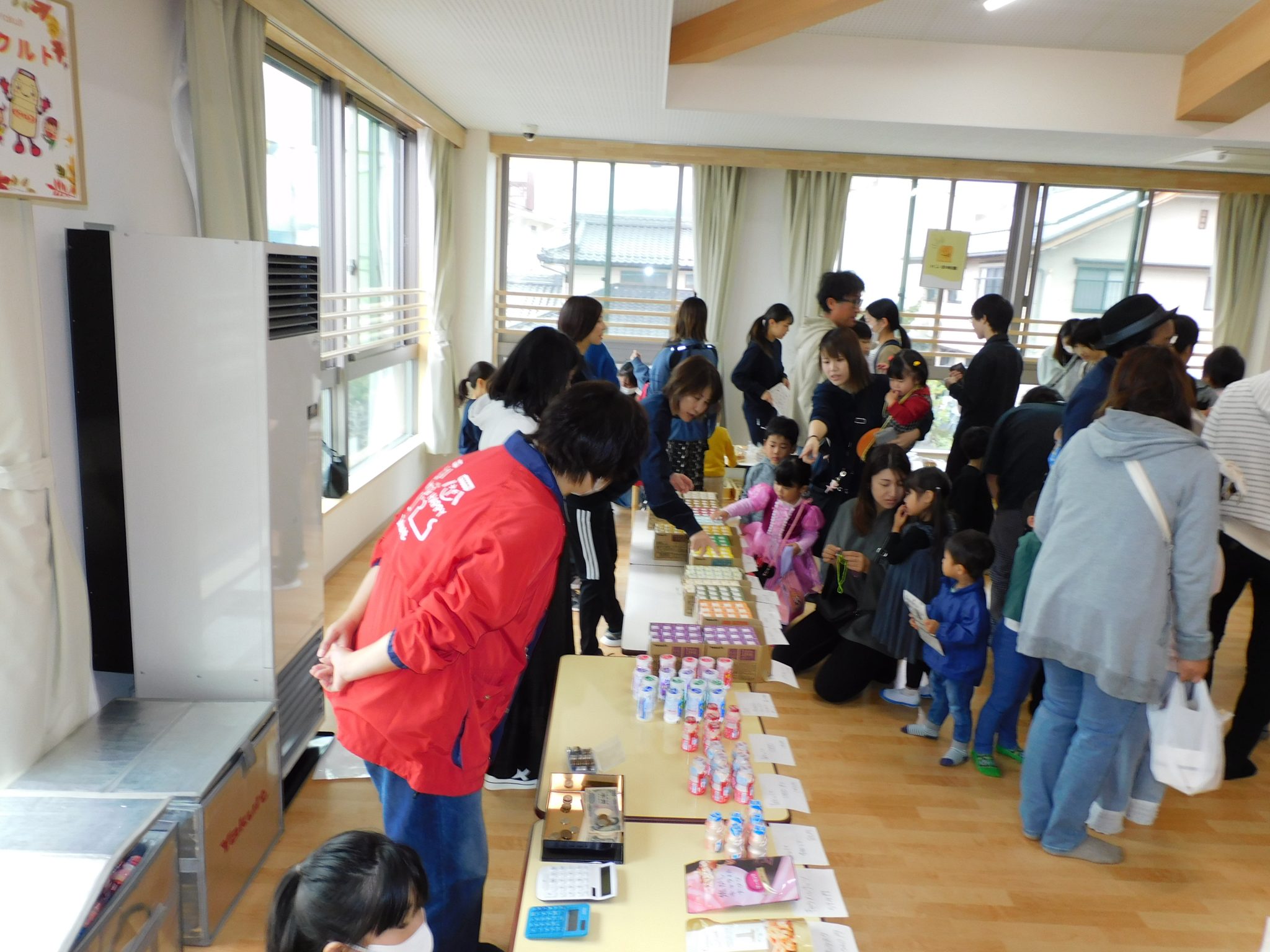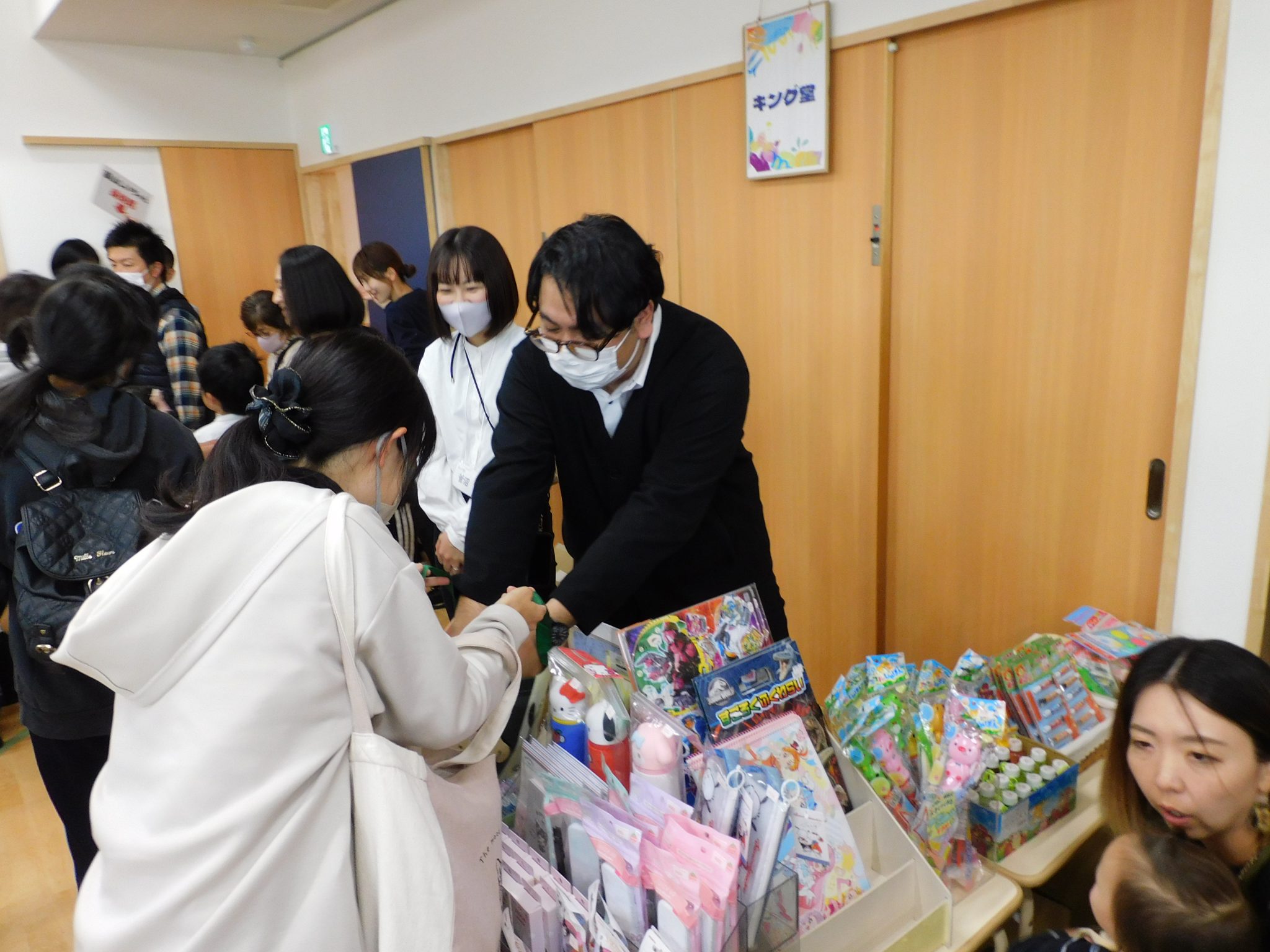 キング堂さんの文具、サルサさんのお弁当、ヤクルトさんの飲料・ヨーグルト、パンの時間さんのパン、裏山しいちゃんさんの射的と駄菓子、京美堂さんのくじ引き、園特性カレー、そして佐々木リョウさんによるパントマイム どのお店でもしっかり楽しんでいってもらえました!!