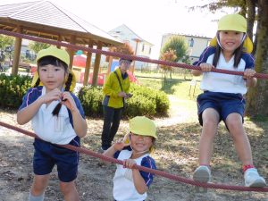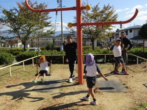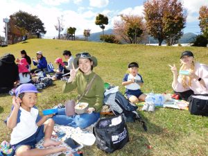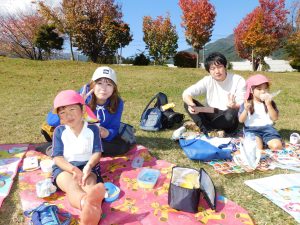 当日は天気も良く、風越・羽場各園から羽場セントラルパークをめざして出発☀公園までの道のりは親子で手をつないで楽しく歩くことができました。公園に着いて学年ごとの写真を撮った後、風越はウォークラリー・羽場は〇×クイズを行い親子で楽しい時間を満喫!そして青空の下みんなでいただくお弁当タイムは格別でした。お弁当の後は自由あそびとなり、公園の遊具でしっかり遊べました。