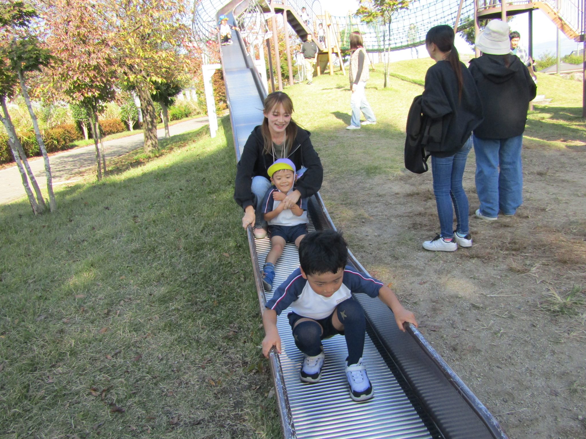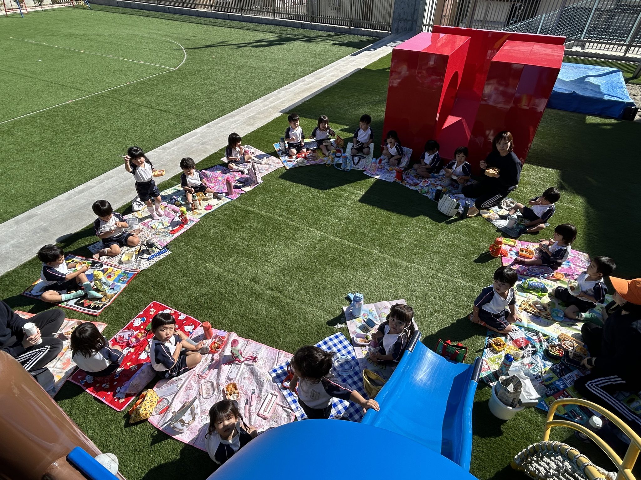 当日は天気も良く、風越・羽場各園から羽場セントラルパークをめざして出発☀公園までの道のりは親子で手をつないで楽しく歩くことができました。公園に着いて学年ごとの写真を撮った後、風越はウォークラリー・羽場は〇×クイズを行い親子で楽しい時間を満喫!そして青空の下みんなでいただくお弁当タイムは格別でした。お弁当の後は自由あそびとなり、公園の遊具でしっかり遊べました。