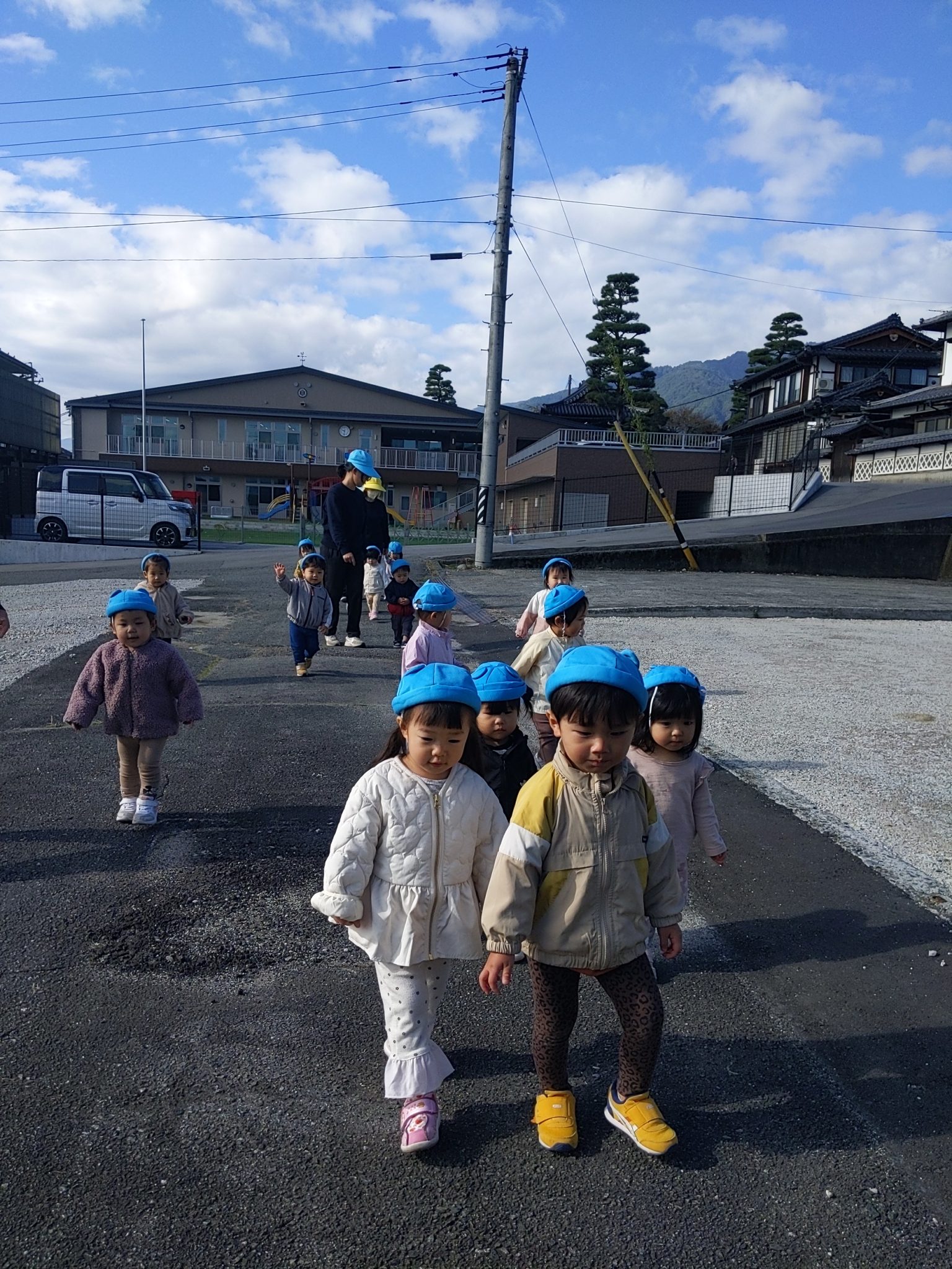 🐤未満児さんたちもそれぞれのクラスで園の周辺をお散歩。気持ちのいい秋晴れの中、楽しい時間を過ごすことができました♪