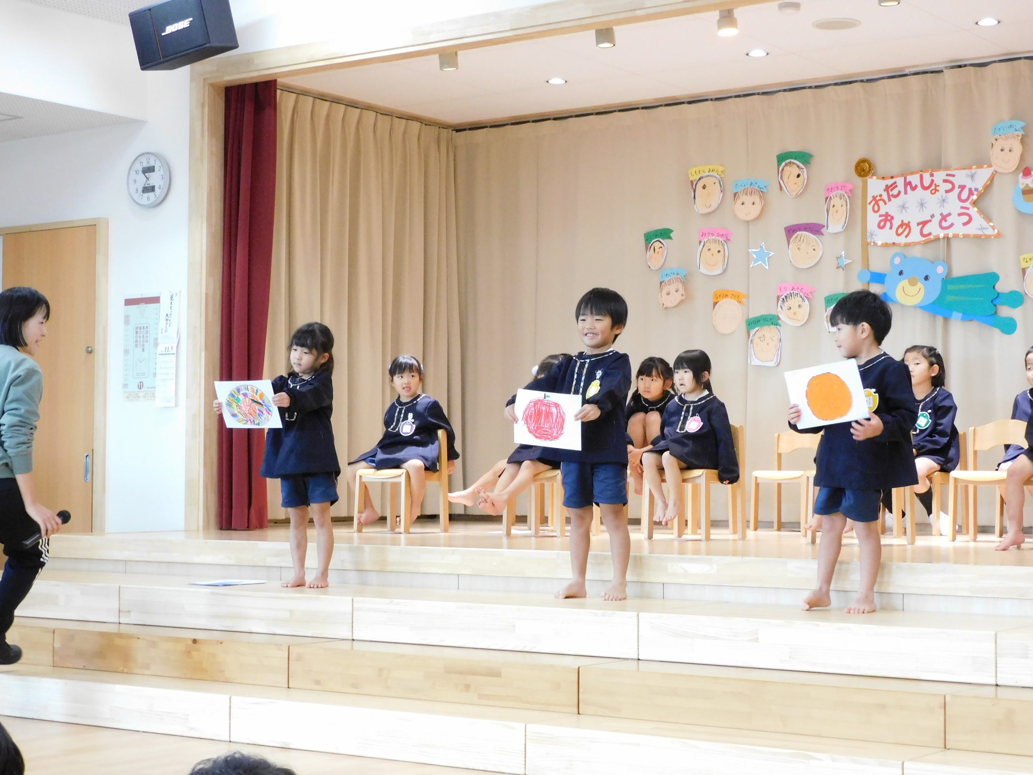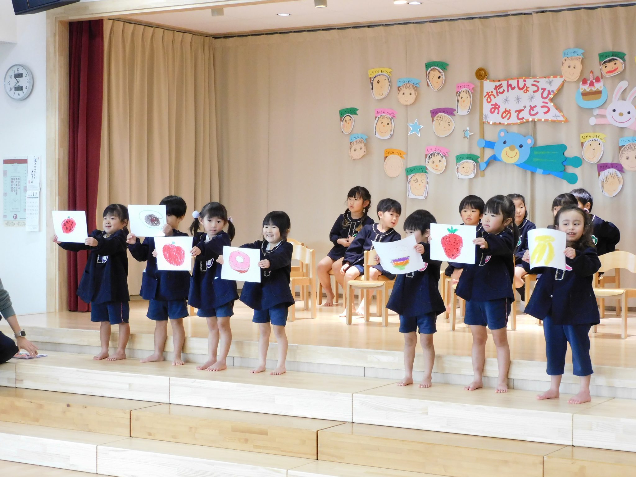 10、11、12月生まれのお友達の誕生会を行いました。1つ大きくなったお友達をみんなでお祝いしました!!  誕生児さん、みんないい声で発表することができすてきなお誕生会でした🎂