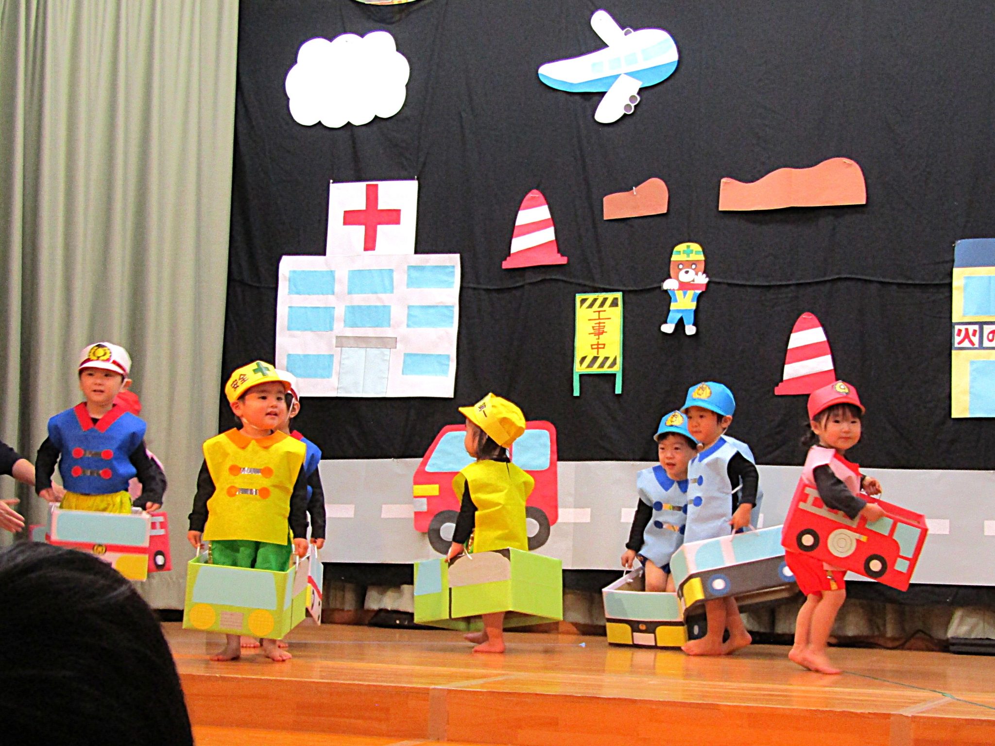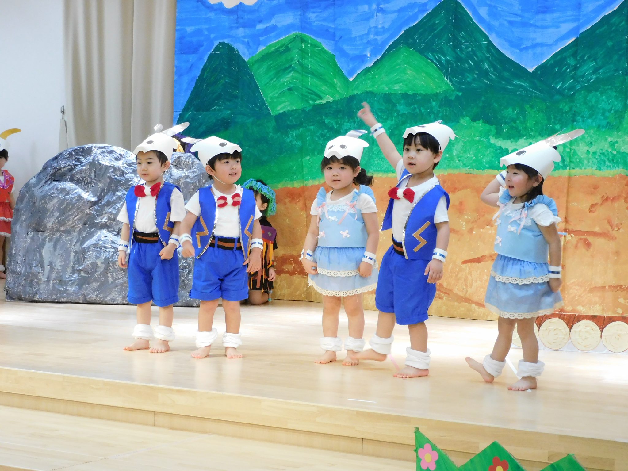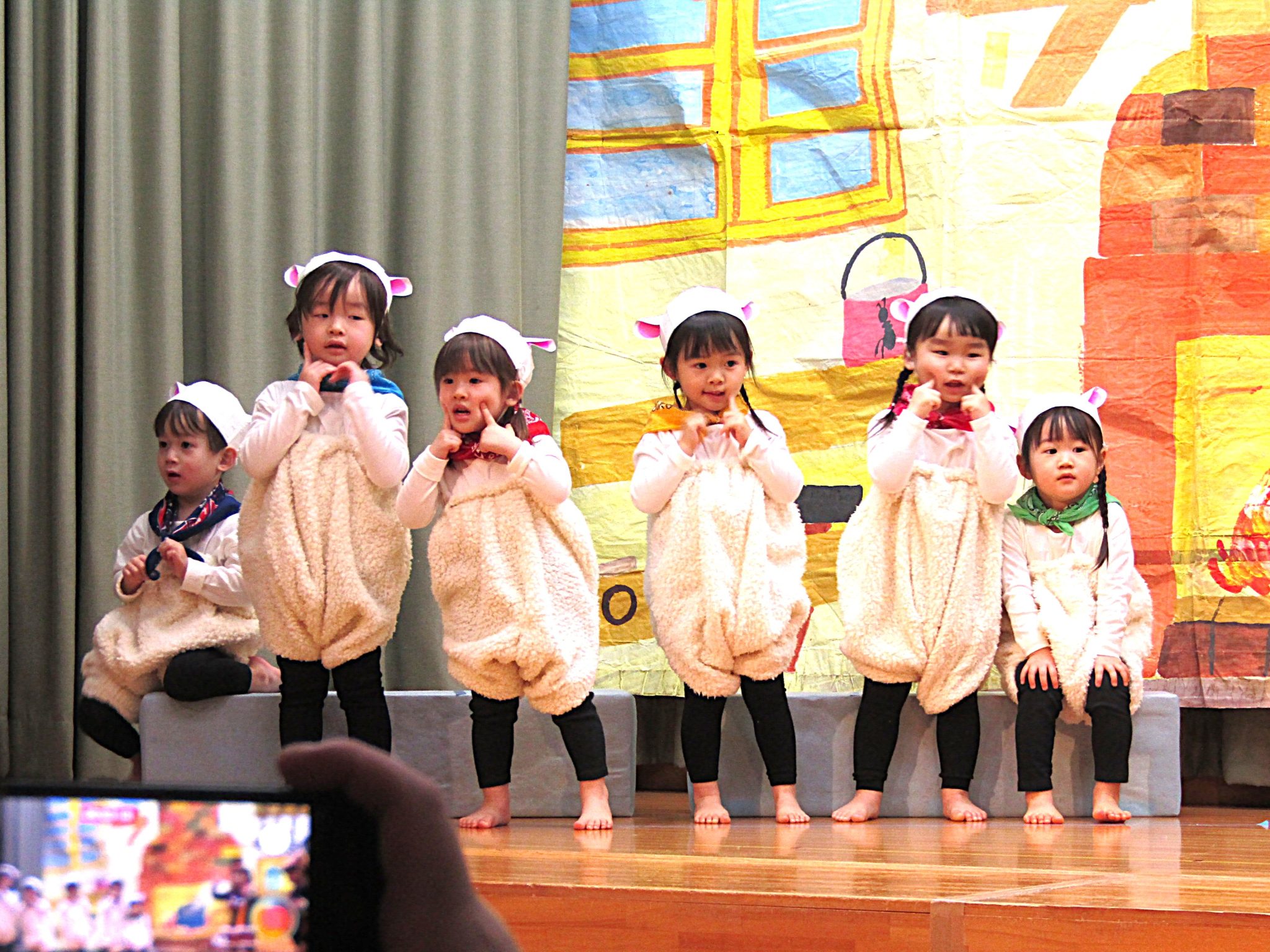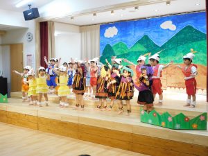 言葉がたくさん出るようになった1才児さん!ステージに上がると緊張した姿も見られましたが、お父さんお母さんの姿をみつけて手を振ったり大きな声でセリフを言ったり、可愛らしく発表することができました。